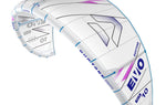 Step up your kiteboarding and sustainability game with the Duotone Evo SLS, high-performance kite design with a sustainable twist. Concept Blue, a marvel of engineering and sustainability. Designed for sporty riders, this versatile freeride kite combines exceptional performance features with eco-friendly innovations. Whether you're launching jumps, looping or cruising, the Evo SLS Concept Blue has you covered. The 2025 Evo SLS Concept Blue is tailored for riders who seek unparalleled performance without compromising on environmental responsibility. This kite uses advanced materials such as sustainable variants of Penta TX and Trinity TX, along with undyed fabrics, bio-based bladders and recycled plastic components, to offer a lighter, stronger, and more eco-friendly option. The kite's SLS construction significantly enhances agility, allowing for precise and effortless maneuverability. With its new 6-point bridle setup, the Concept Blue version of the Evo SLS ensures superior stability of the tip section, making sharp and accurate turns feel natural. Adjusted frontlines extend the bar stroke, giving you unparalleled safety and control in every situation, whether you are floating on the water or taking to the skies. Elevate your performance with strong, reliable boost and impressive hangtime that keeps your tricks looking smooth and effortless. Optimized for versatile use, the Evo SLS Concept Blue adapts to various wind conditions, making it a quintessential companion for all your kiteboarding adventures. Improved trailing edge tension and lightweight batten pocket construction result in minimal flutter, offering quicker, smoother turns. On the sustainability front, undyed fabrics minimize water and energy usage during manufacturing. The bio-based bladder utilizes renewable resources, reducing the kite's environmental footprint. Recycled plastic components infuse recycled materials into critical parts without compromising on toughness or reliability.