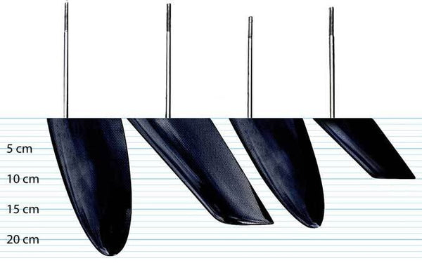 The NK rudder is perfectly tailored to your needs and preferences. The Surf rudder is an efficient shape and size for better control in bigger waves and is 23cm deep. The Race rudder is rounded and angled for the most effcienct all around use. 18cm deep.All rudders have a 8mm thick shaft.